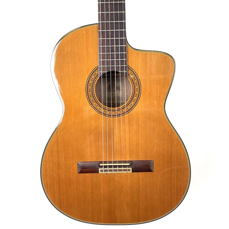 For sale we have a Made in Japan Takamine CD132SC Acoustic-Electric Nylon Guitar from 1998 in natural finish with a quality hard case. This guitar is in solid good condition, freshly strung up with a standard classical action of 3.5mm at the 12th fret, easy enough to lower if you want a less traditional set…