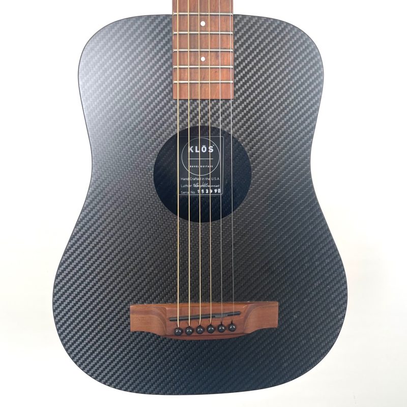 For your consideration we have a used Klos Hybrid Acoustic Electric Travel Guitar ca. 2018 in Black with original travel bag and accessories. This is the original version with a wood (mahogany) neck on carbon fiber body. Some light scratching on the top of the headstock, but overall good condition. Fresh set up with factory…