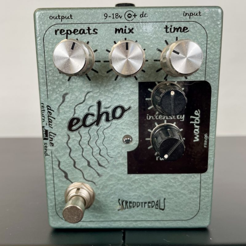 Tested, sounds lush and awesome. Give us a call for an appointment- 828.253.2003, or available for ship via Reverb- https://reverb.com/item/89473690-skreddy-echo-pedal-ca-2010-green