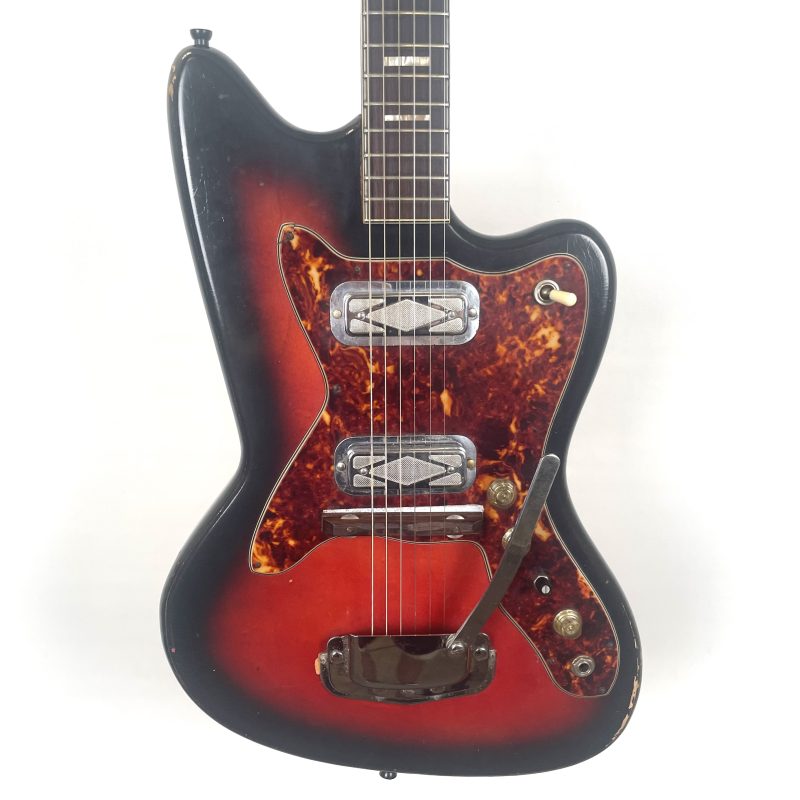 For your consideration we have a made by Harmony in Chicago Silvertone 1478 Silhouette Electric Guitar w/HSC ca. 1966 in a lovely Burst. Missing a knob and the truss cover, but otherwise original and solid good condition. A wieldy 7# 3oz, fresh set up with DR Rare Pure Blues .10s with an action of 1.3mm,…