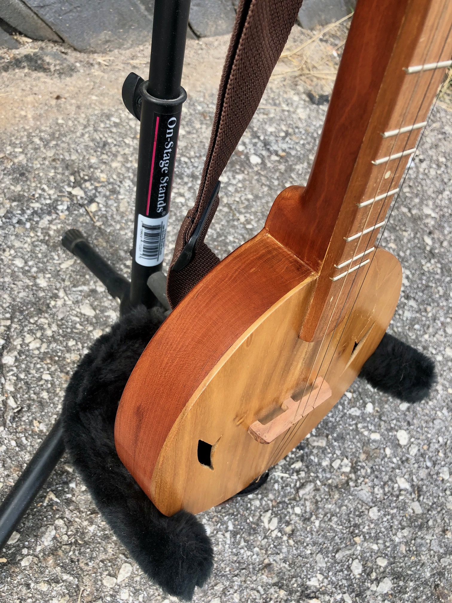 On consignment we have a super rare and super sweet Bill Neely “Mt. Banjo” Dulcijo w/gig bag hand made in Damascus, Va. His 58th build overall. Solid wild cherry neck, back sides and top, white oak fingerboard. Very well made, extremely musical, super cool! Solid good condition and just a nuts cool piece of Americana.