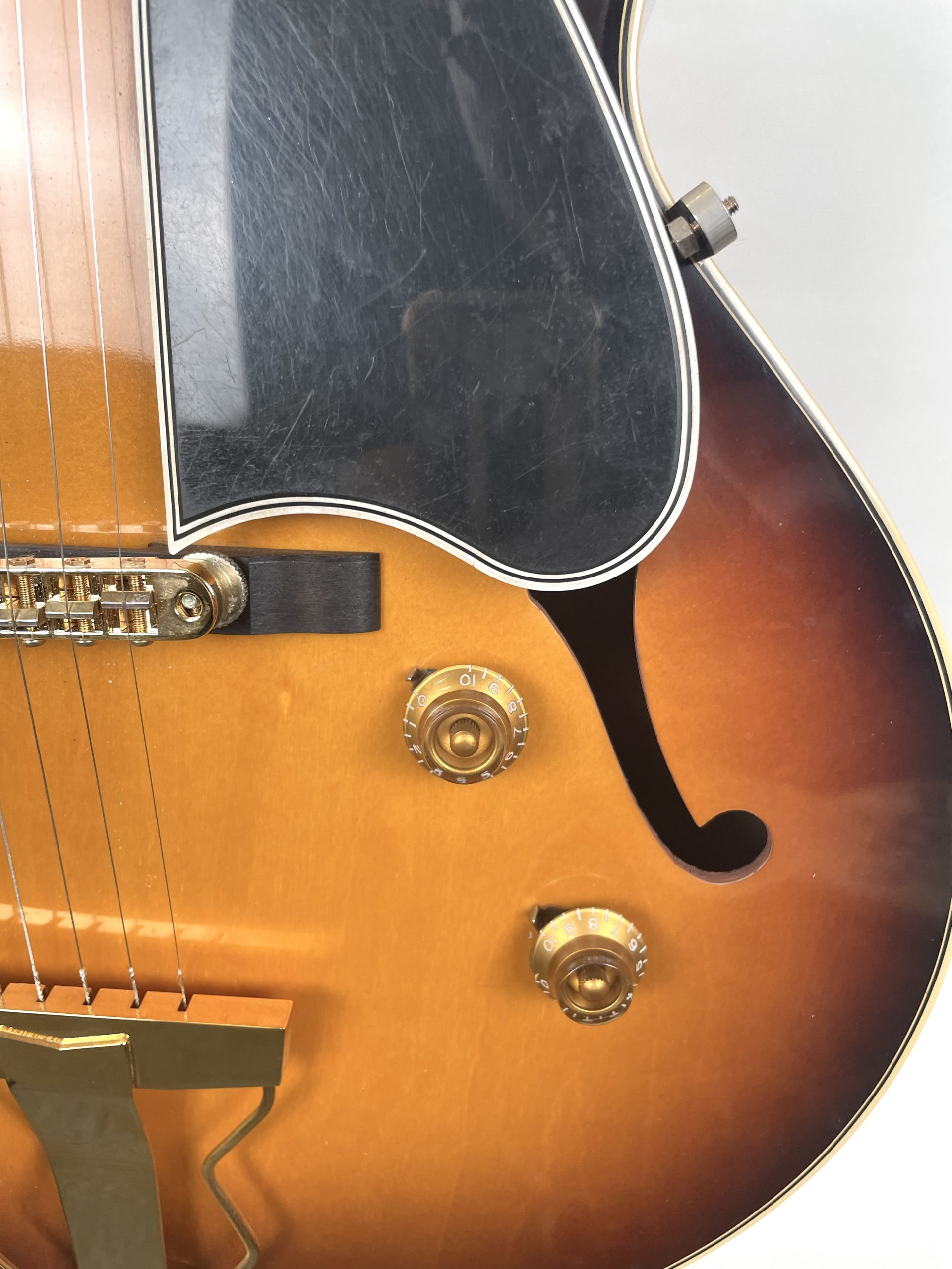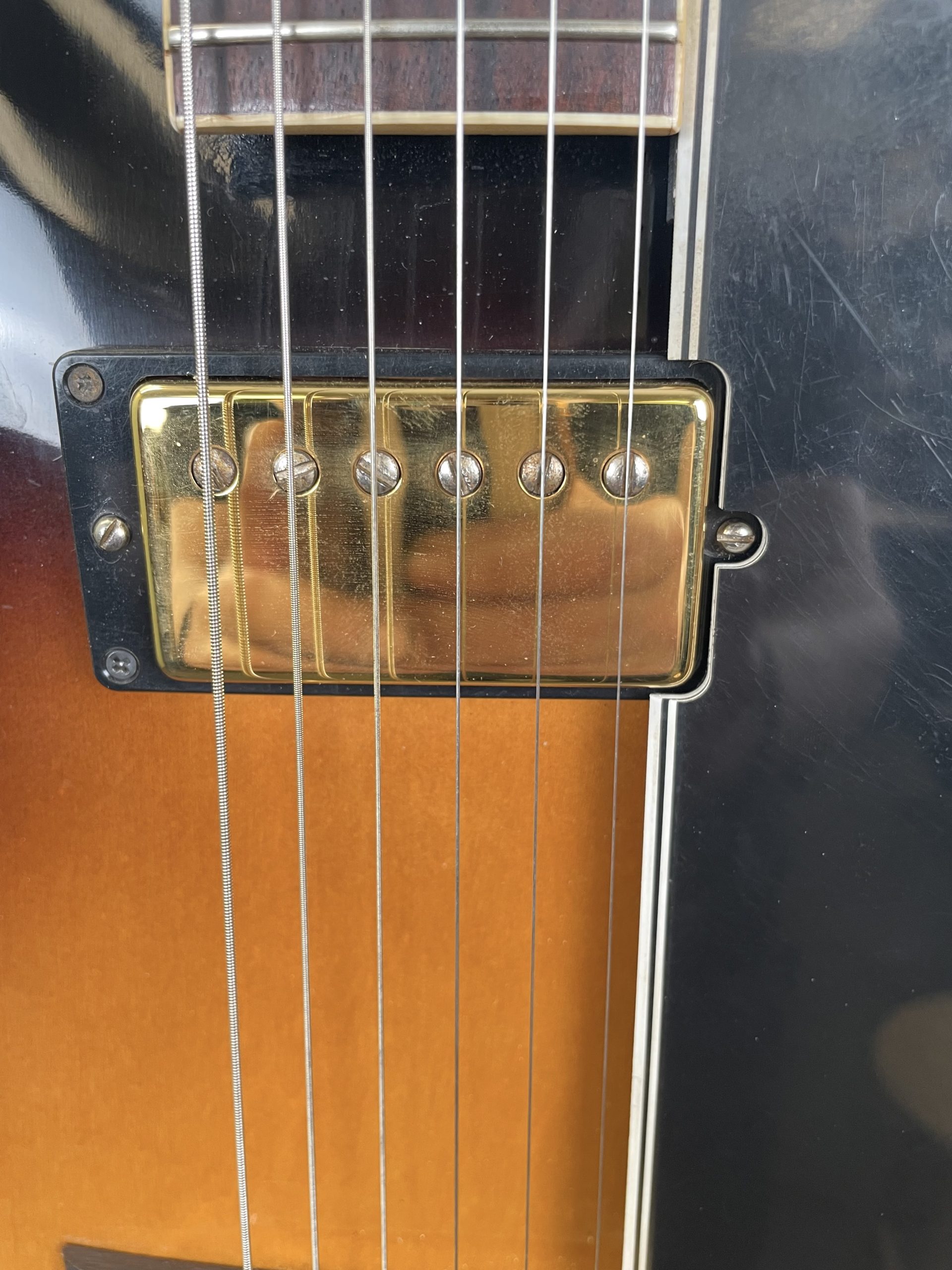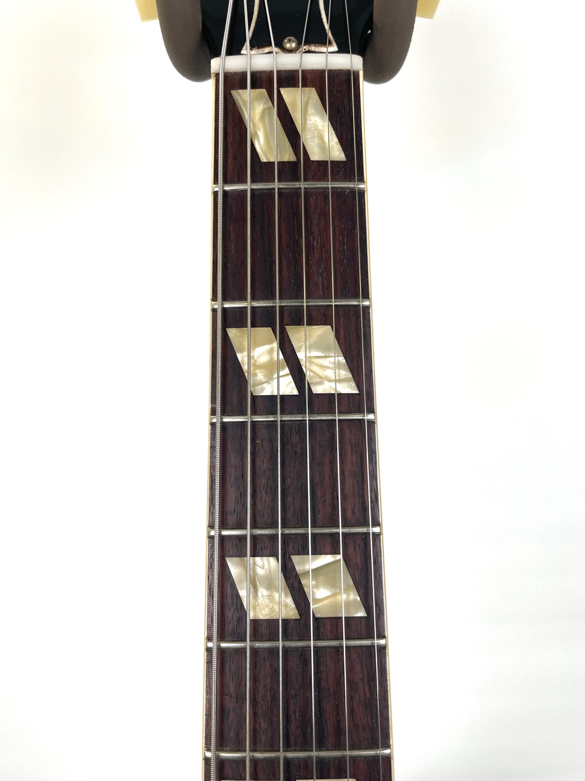 Overall good/very good condition, this guitar has seen some action but no abuse. Some wear to the hardware, some light scratching on the pick guard, some wear to the finish, starting to show a small bit of age, but overall, a good example of one of these. Frets and fingerboard are in excellent condition, no ring rash on the neck. Healthy truss rod. The case is clean with no smells. From an estate, we could not find the Gibson COA, but have verified this guitar with Gibson. The former owner paired this guitar with a really lovely strap that matches this guitar well . . . we are leaving it with it.