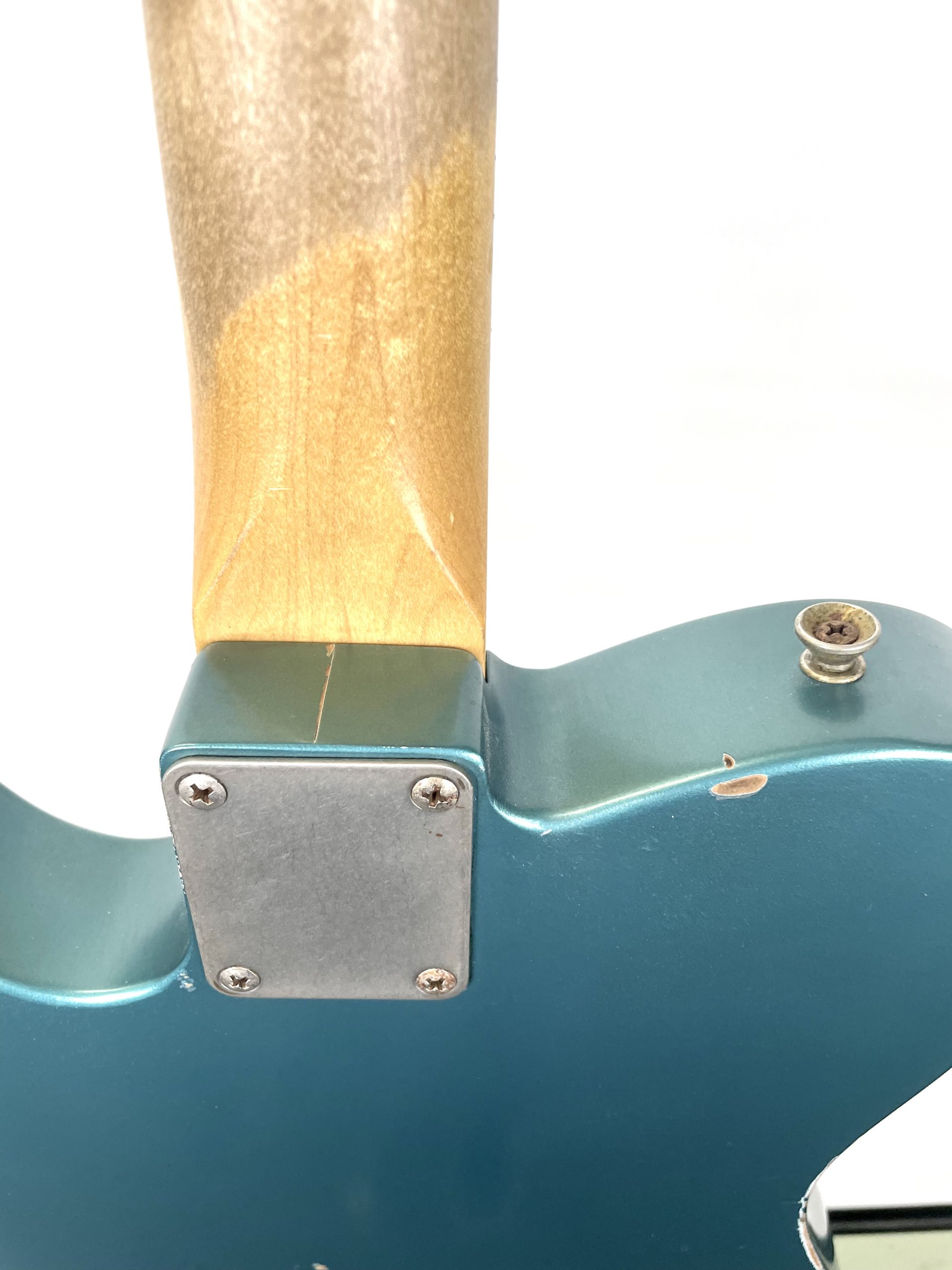 For sale we have a 2015 Nash T-63 Tele with stock Bigsby in Ocean Turquoise with a factory light relic in very good condition. Includes original hardshell case which is clean and good. Alder body, the guitar weighs 8# 5oz. A chunkier C type almost D type neck (42mm nut width, 20mm depth at first fret- 52mm width at 12th fret with a depth of 25mm) with a 10 degree radius, medium frets, slight wear to the 1st 3 frets, but solid and ready to go, fresh set, no neck shim, with DR Pure Blues .10 strings with a comfie 12th fret (top of fret crown to bottom of low E string) of about .85mm. Stock Lollar Pickups (Special, Vintage). 3-ply mint pickguard and the light finish and hardware relic makes this a looker. Fun to play, the Bigsby feels great. A nice vibe machine here. Ready to go, call for appointment or more details. 828-253-2003. Local pick up available, give us a call, available with USA ship via Reverb- https://reverb.com/item/90812062-nash-t-63-bgsb-2015-2015-ocean-turquiose-light-relic?publish_confirmation=true